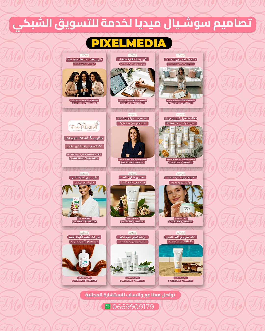 Complete social media design and content creation for Team Meriem, a Farmasi network marketing brand. We crafted a cohesive visual identity with engaging posts for skincare and beauty products.