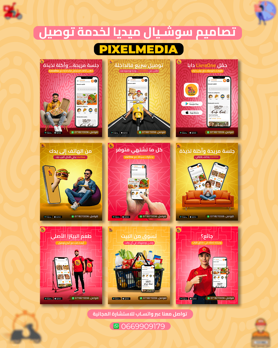 Social media design and promotional content for LivrOne, a food delivery application. We created vibrant, eye-catching ad creatives and app promo content to drive downloads and engagement.