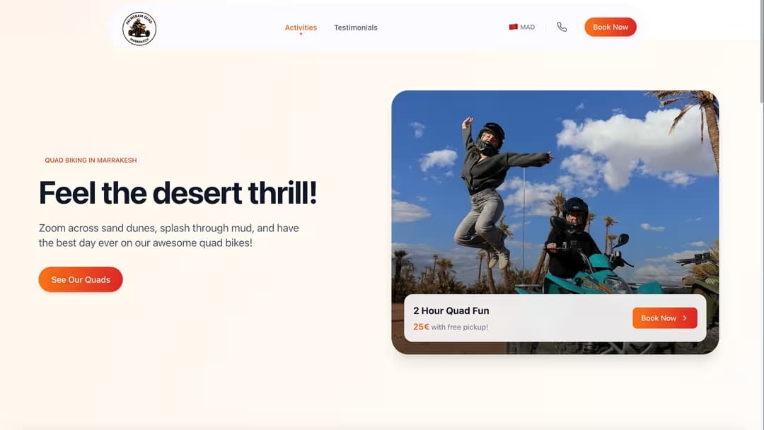 Dynamic website design for Palmerie Quad to showcase quad biking and outdoor tourism activities. We integrated a sleek layout to attract more bookings and tourists.