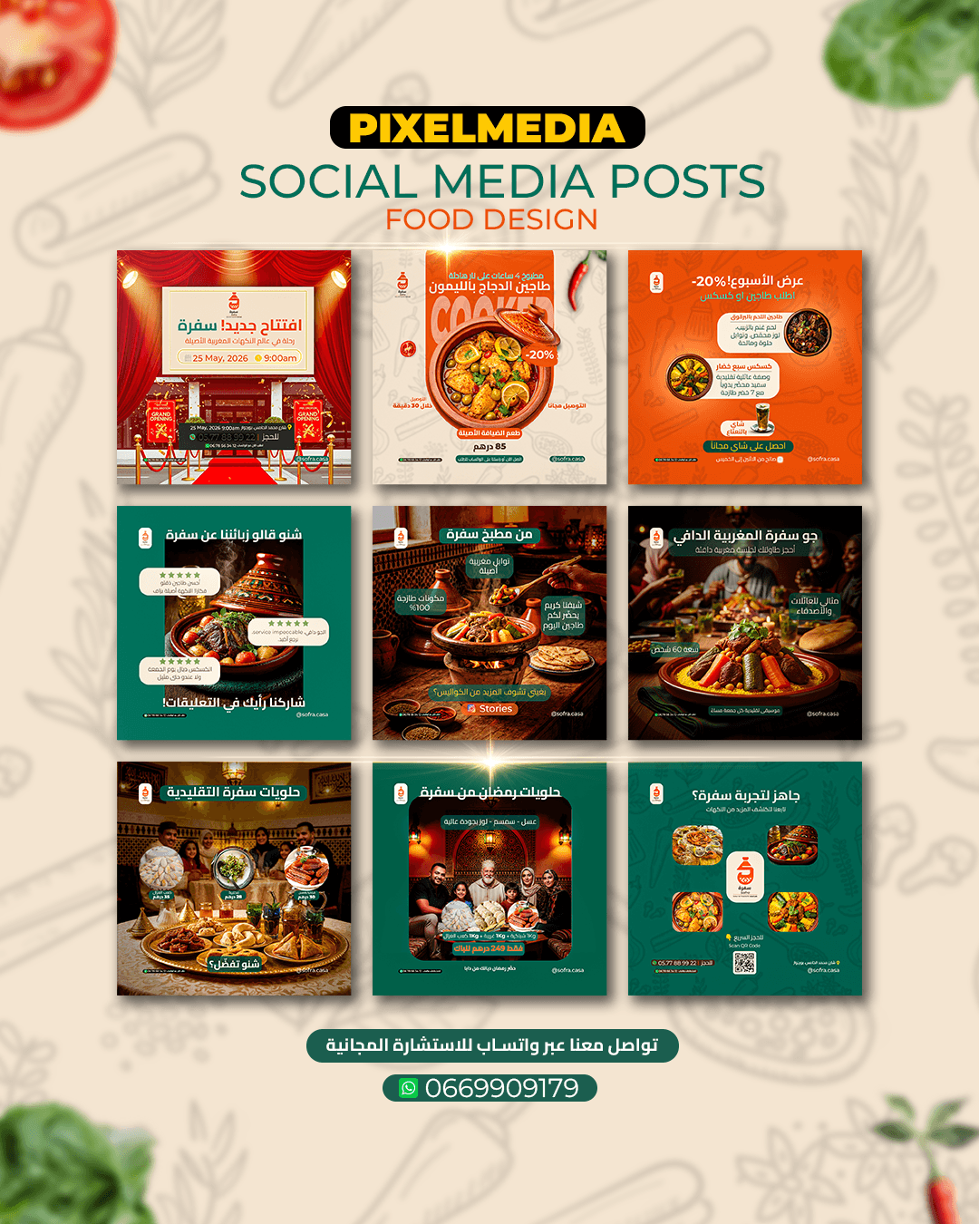 Social media posts and food photography design for Sofra, a traditional Moroccan restaurant. We created mouth-watering visuals and a warm brand identity that captures the essence of Moroccan hospitality.